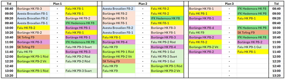 Här kommer slutgiltigt schema för miniligan på lördag.